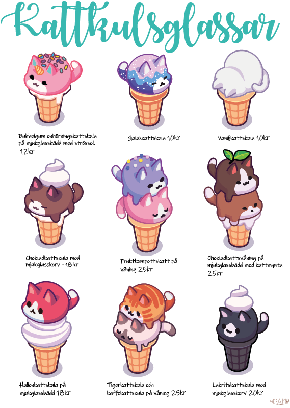 Hur magiskt är det inte att som barn få försvinna in i sin egna lilla värld full utav fantasi? Med denna posters gör vi precis det, låter barnens fantasi kliva fram! Med vår kattkulsglassar meny har ditt barn sina alldeles egna glassar att erbjuda i sitt lilla café eller bistro.