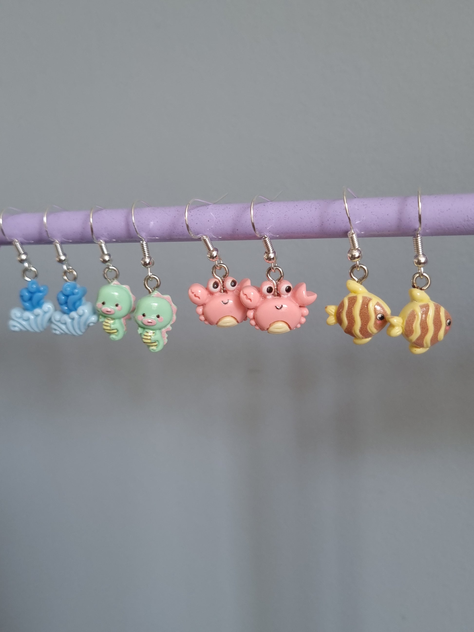 Barnörhängen formade som små havsdjur i miniformat, mycket omtyckt utav de mindre barnen. Alla havsdjursörhängen i fina pastellfärger.