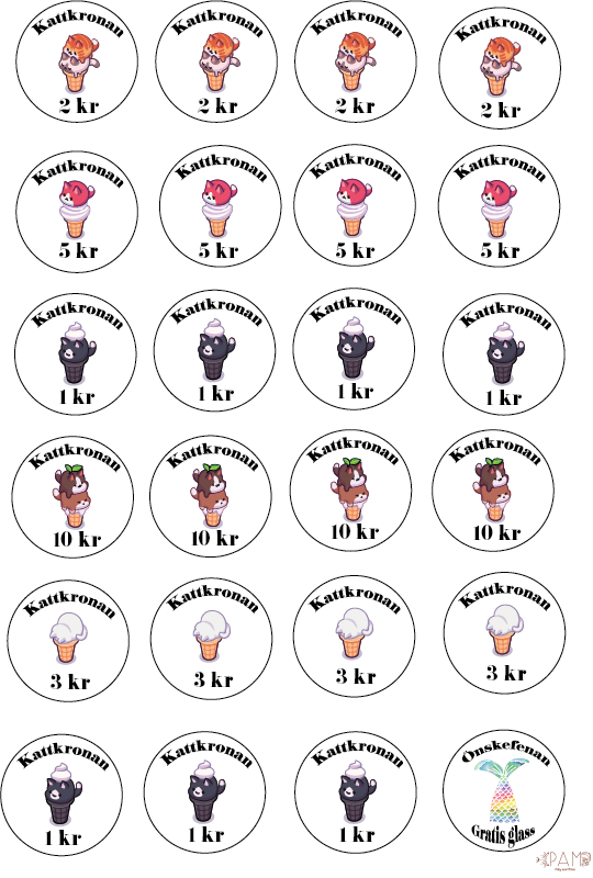 Vår poster - Kattkronan, är ett ark med mynt som skapar ett tillfälle för barnen att använda sin fantasin ännu mer och gör lekstunden ännu roligare! För hur kul är det inte att ha speciella mynt som bara går att använda i ditt barns alldeles egna café eller bistro!